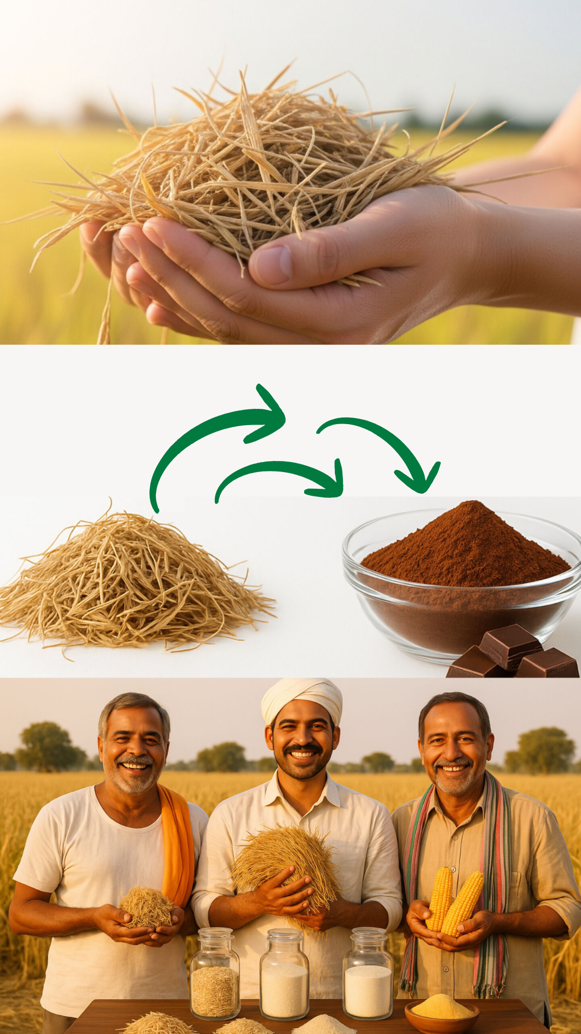 Our entire approach is rooted in practicality, scalability, and inclusivity. Every innovation we create is designed to benefit the environment, support industry needs, and uplift the farming community. By converting crop residues into high-value ingredients, we reduce environmental burden, provide farmers with new income opportunities, and offer ethical, affordable options to conscious brands and consumers.